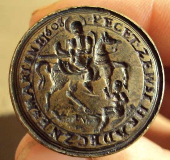 originál typáře pečeti obce Hradečná z roku 1608/v soukromé sbírce/